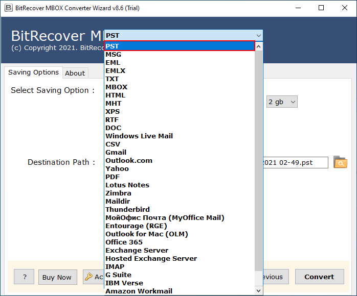 Industry-grade application to convert MBOX to PST without any file size restriction. Tested with over 2000GB+ of data in one go.